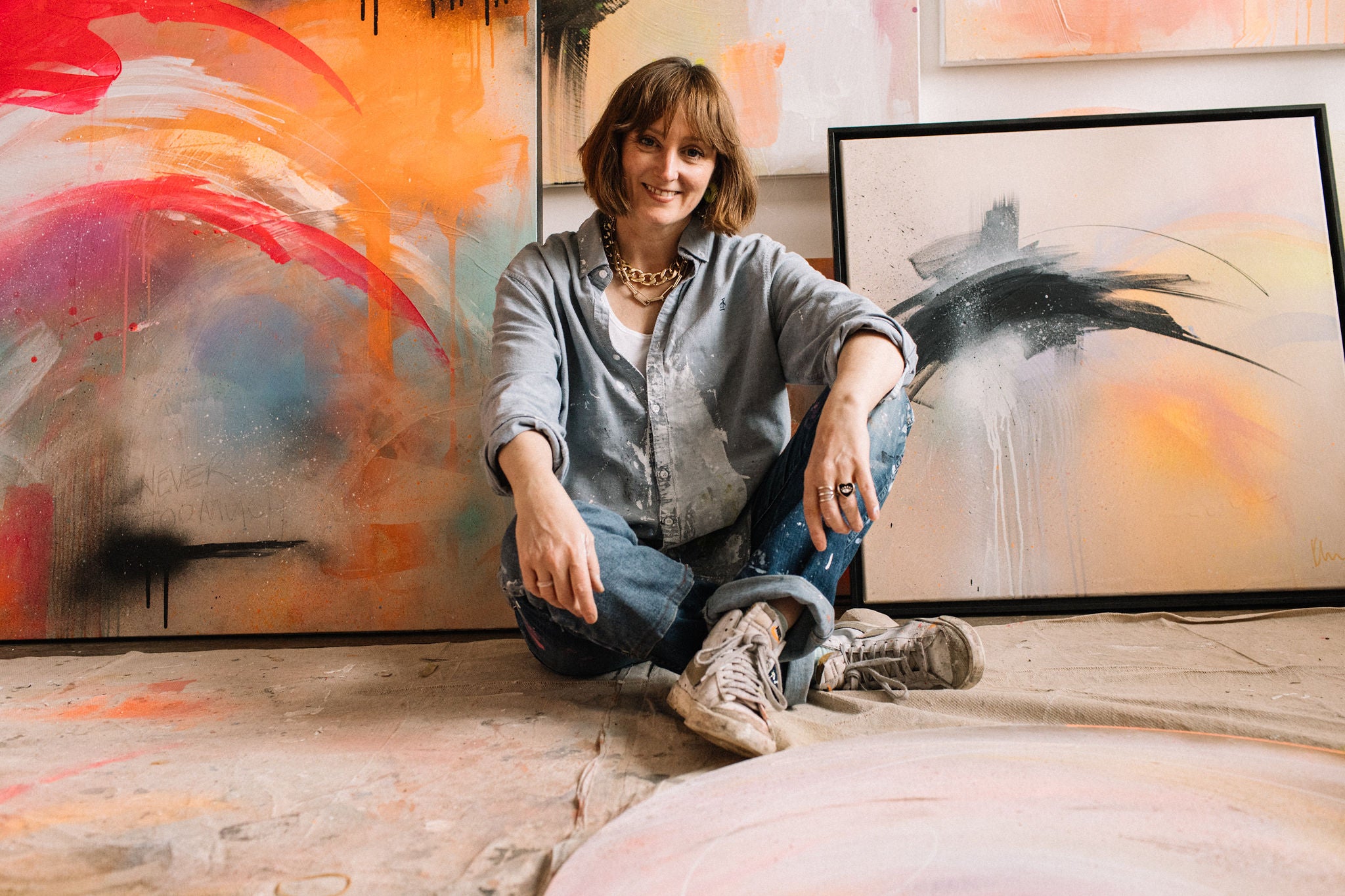 Hi, I’m Kate — a London-based contemporary abstract artist, former designer, and a lifelong feeler of the world. My work is a response to sound and sensation. I’m considered a highly sensitive person, and I suspect I experience a form of synesthesia — when I hear music or feel energy, colour choices become completely intuitive, as if the painting is a visual translation of vibration itself.