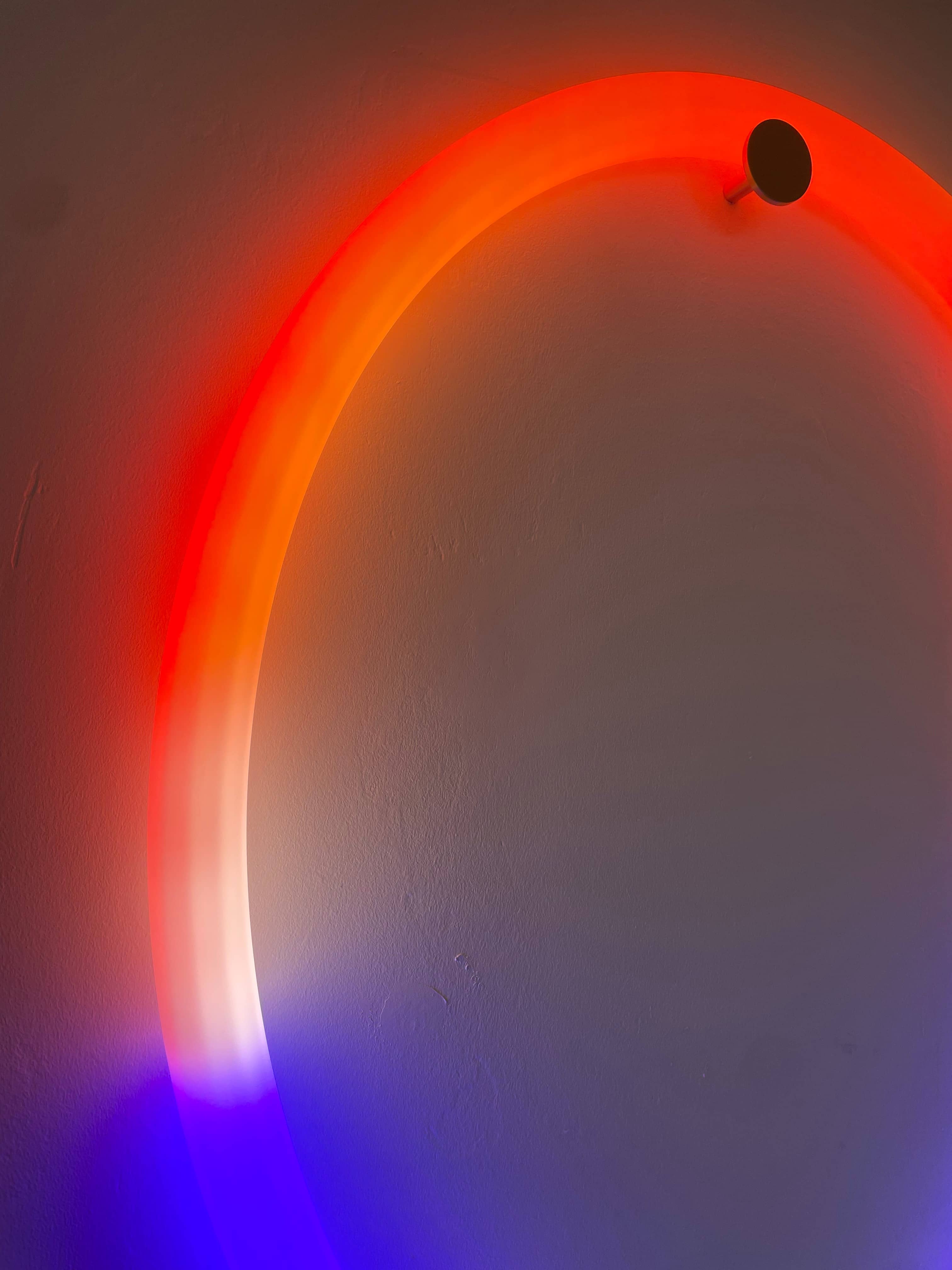The downstairs gallery becomes a sanctuary of shifting light and emotion through Frankie’s installation. As tones move from grounding warmth to awakening brightness, the space envelops the viewer in a flow of gentle illumination - encouraging stillness, reflection, and renewed energy.